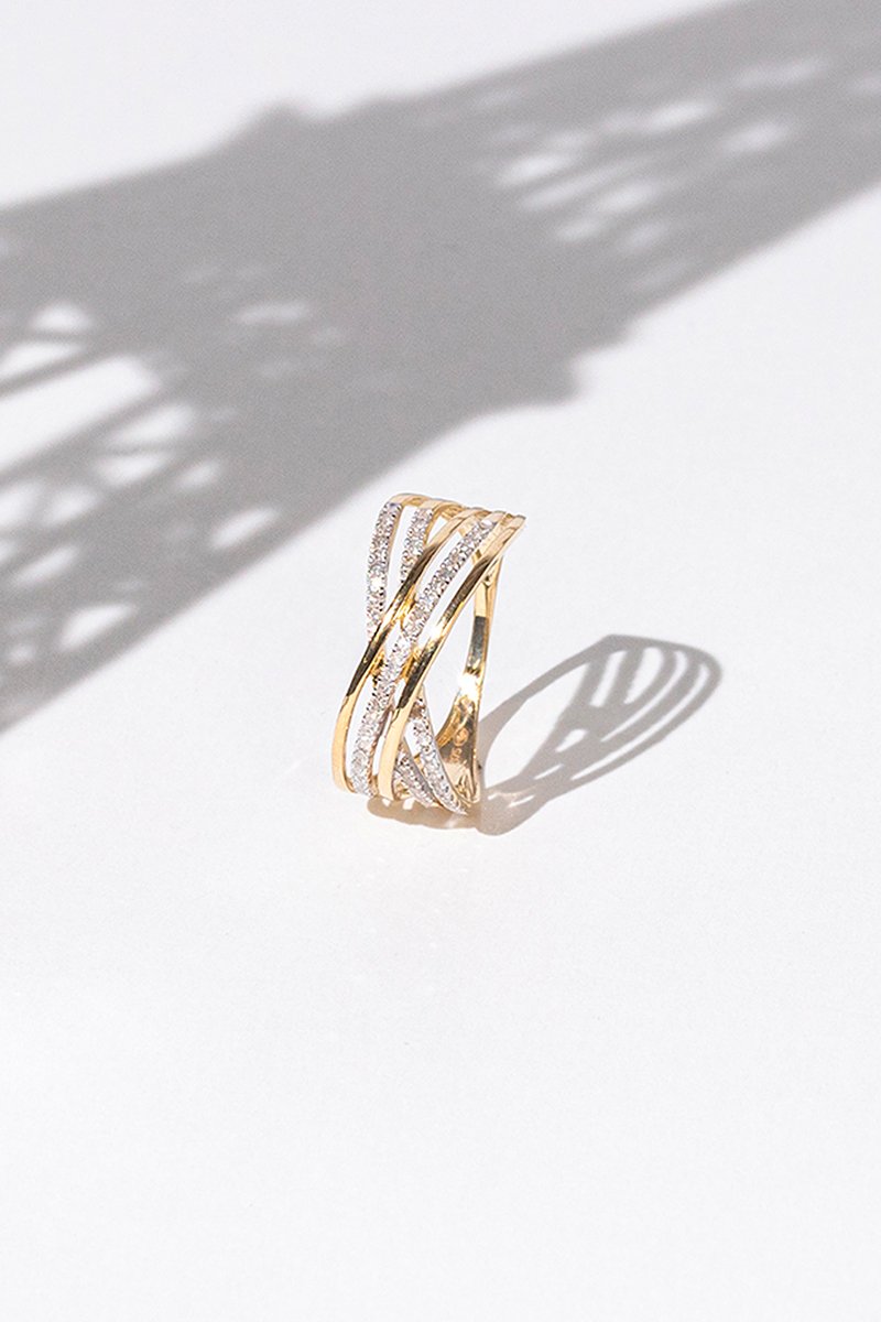 Anel de ouro amarelo incrustado com 53 diamantes.