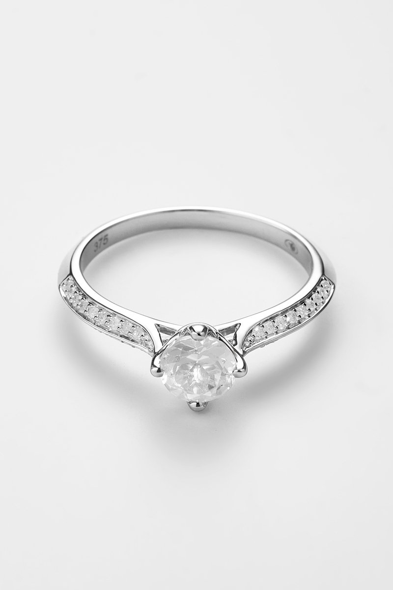 Composição: ouro branco 375/1000, diamantes 0,32 quilates/86 e topázio 1 quilates/1