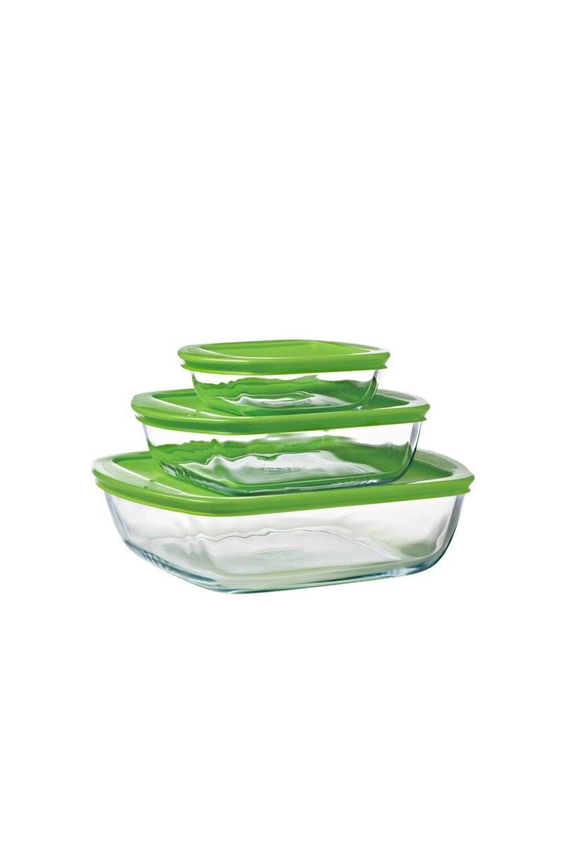 3 travessas quadradas em vidro borossilicato com tampa Cook & Store - 14 x 12 / 20 x 17 / 25 x 22 cm