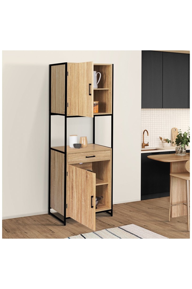 Móvel de porcelana industrial de 2 portas Memphis - Imitação de madeira e preto