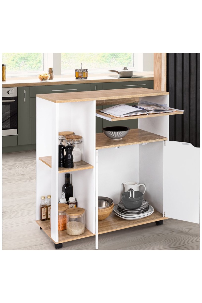 Carrinho de cozinha com rodas - Branco e imitação de madeira