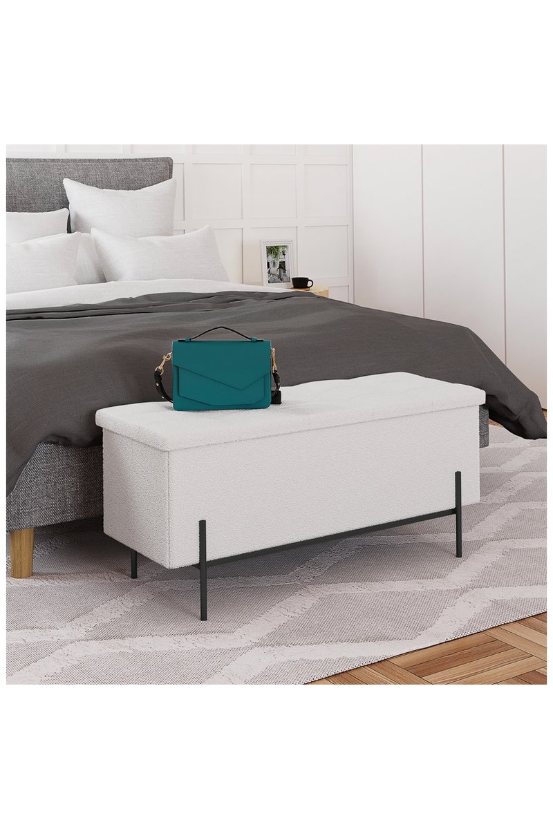 Composição: tecido de poliéster bouclettes, metal e MDF