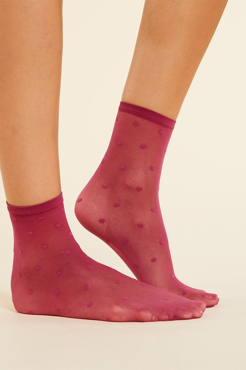 Meias em tule plumetis.