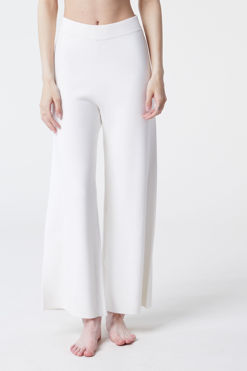 Calças wide legs de cintura subida Alia - Cru
