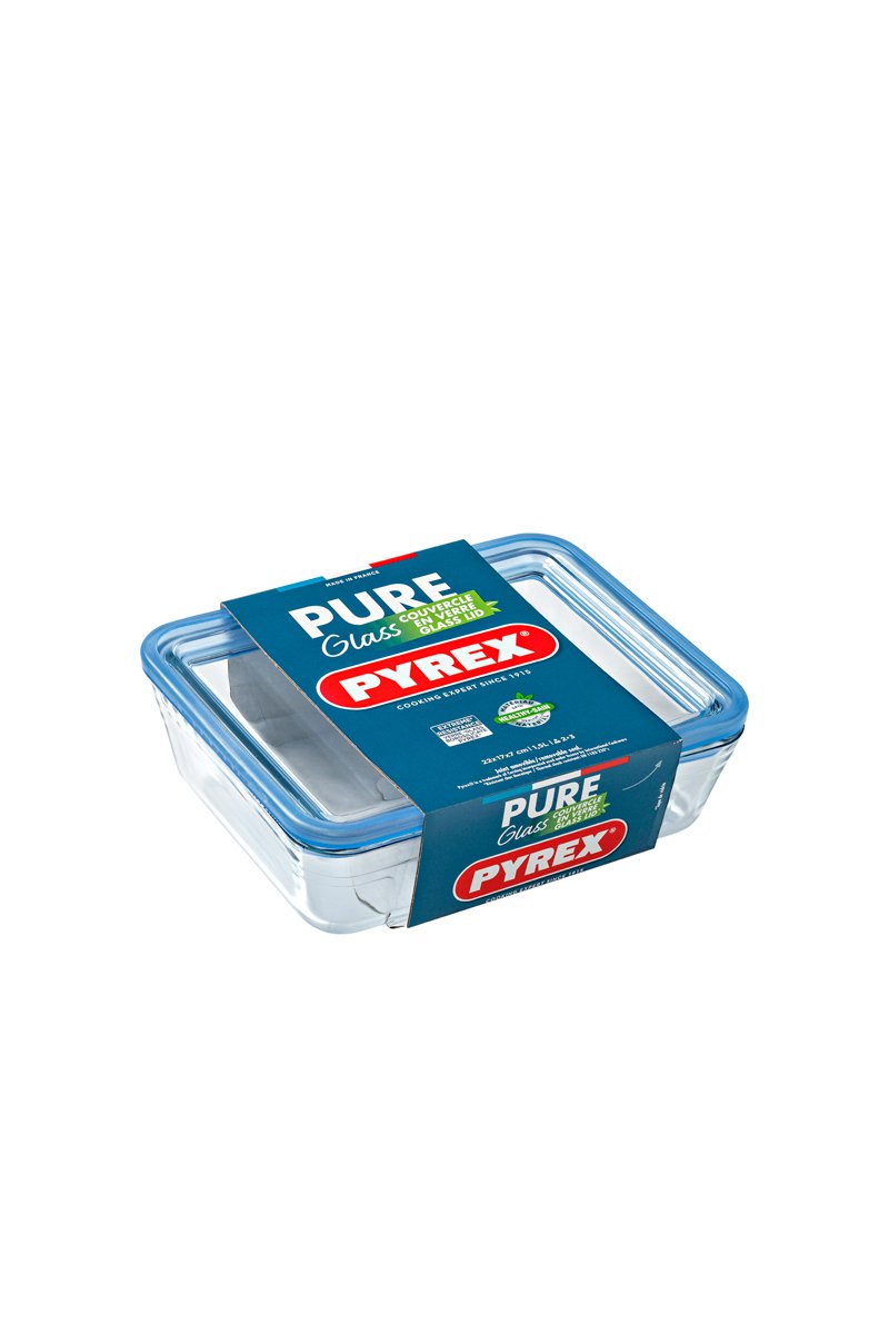 Caixa de conservação retangular com tampa em vidro borossilicato.