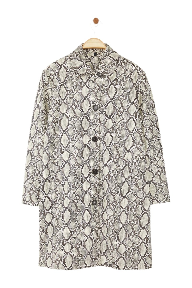 O modelo mede 1 m 79 e veste o artigo no tamanho S/36.