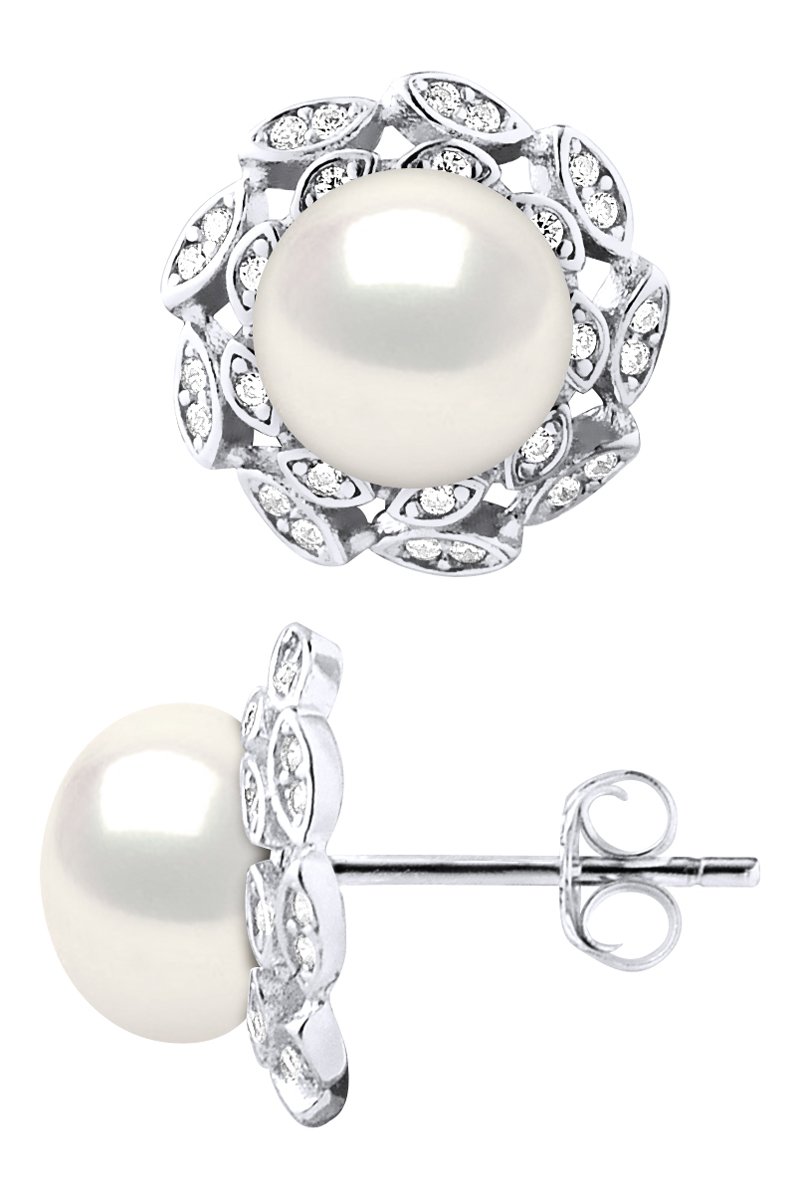 Brincos de prata com uma pérola de cultura e óxido de zircónio.