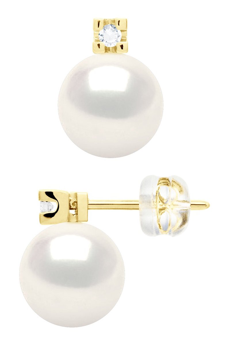 Brincos em ouro amarelo com uma pérola de cultura e um diamante.