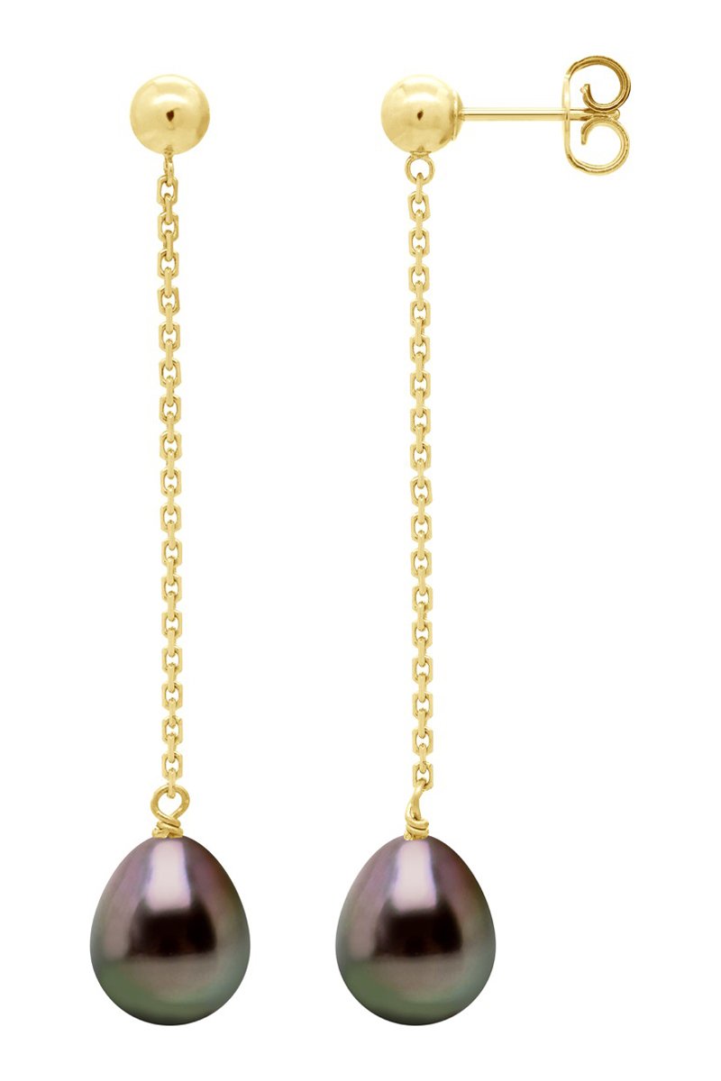 Brincos pendentes em ouro amarelo com uma pérola de cultura.