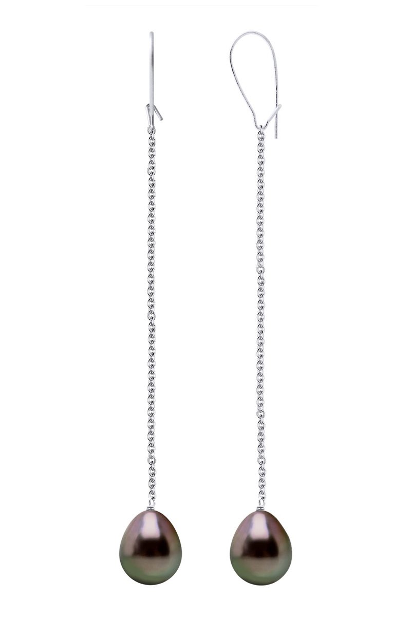 Brincos pendentes em ouro branco com uma pérola de cultura.
