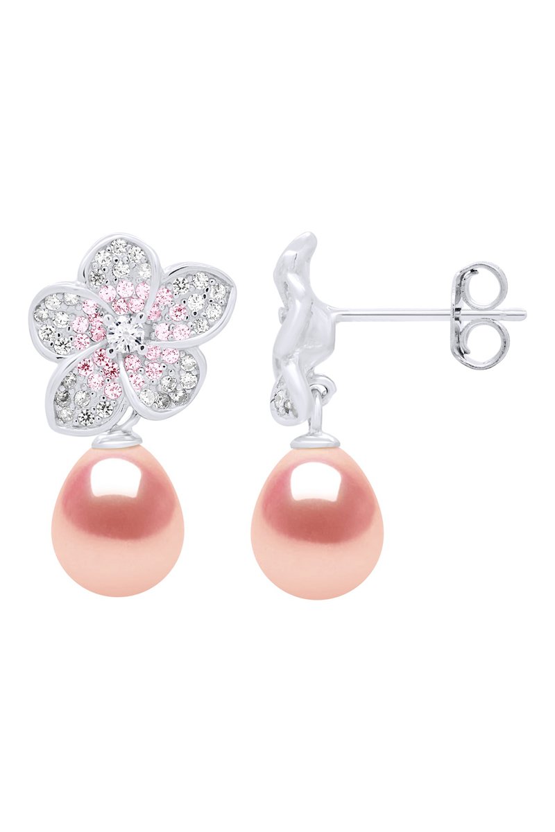 Brincos em prata com uma pérola de cultura e óxido de zircónio.