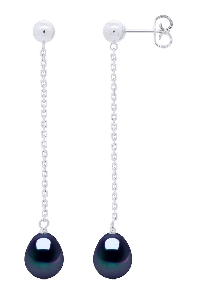 Brincos pendentes em ouro branco com uma pérola de cultura.