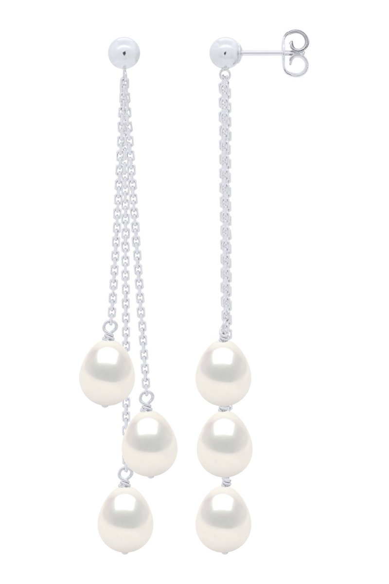 Brincos pendentes em ouro branco com pérolas de cultura.