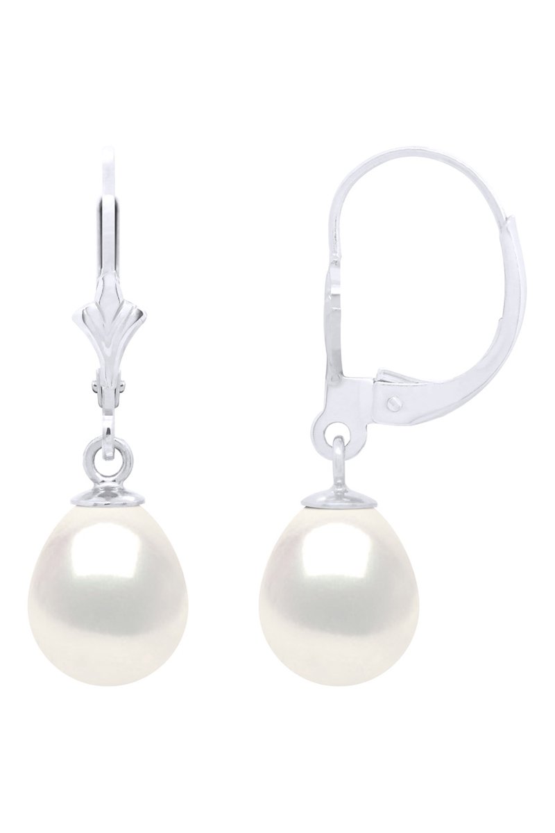 Brincos em ouro branco com uma pérola de cultura.