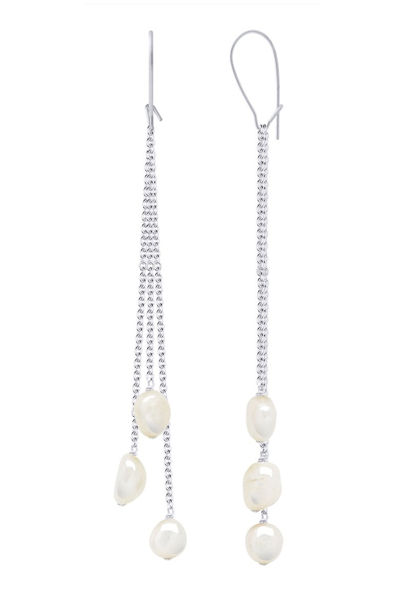Brincos pendentes em ouro branco com pérolas de cultura.