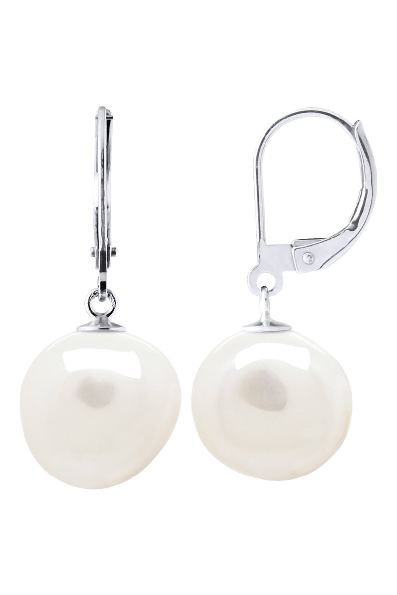 Brincos em ouro branco com uma pérola de cultura.