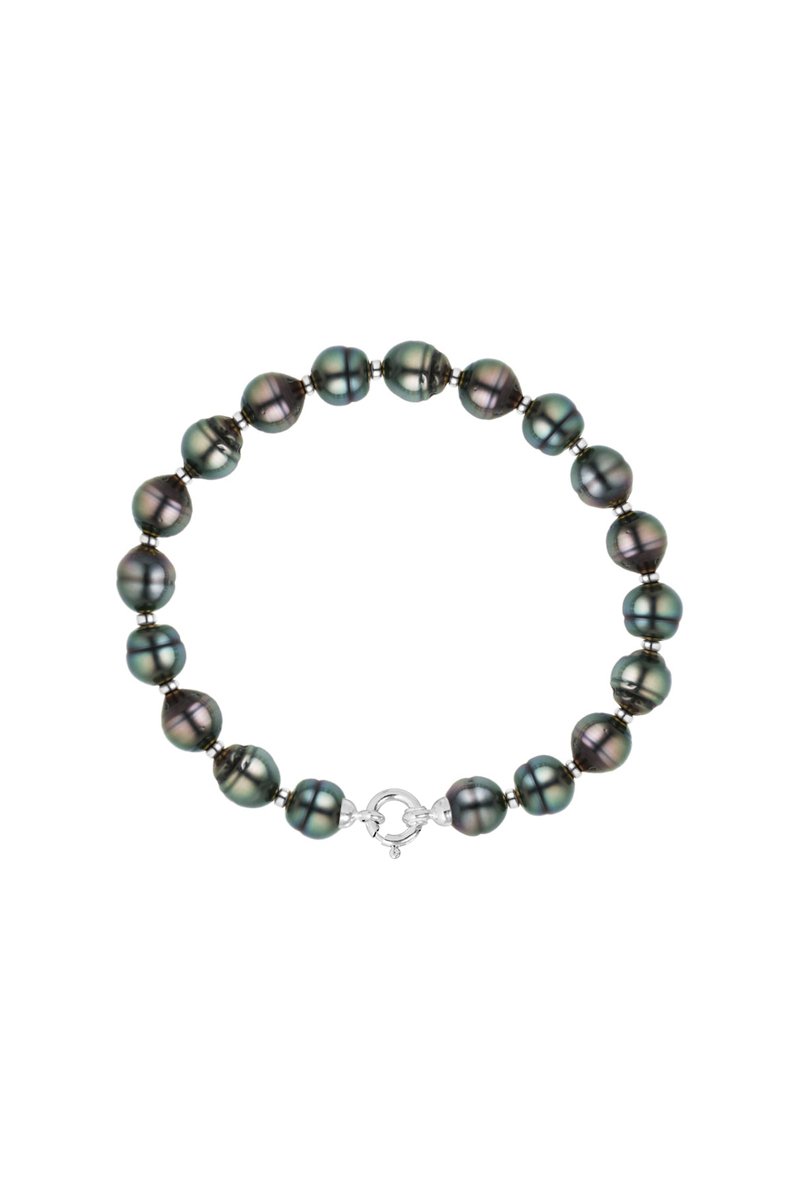 Pulseira em ouro branco com pérolas de cultura redondas.