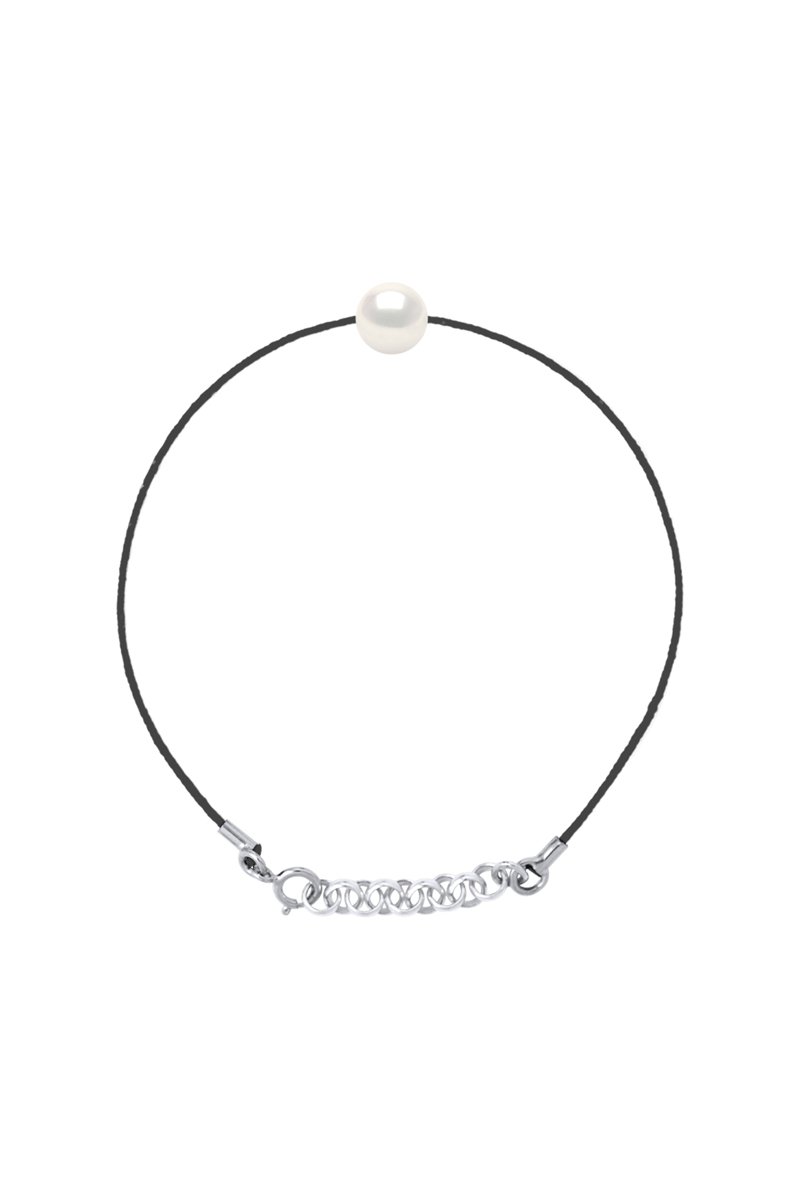 Pulseira em prata com uma pérola de cultura.