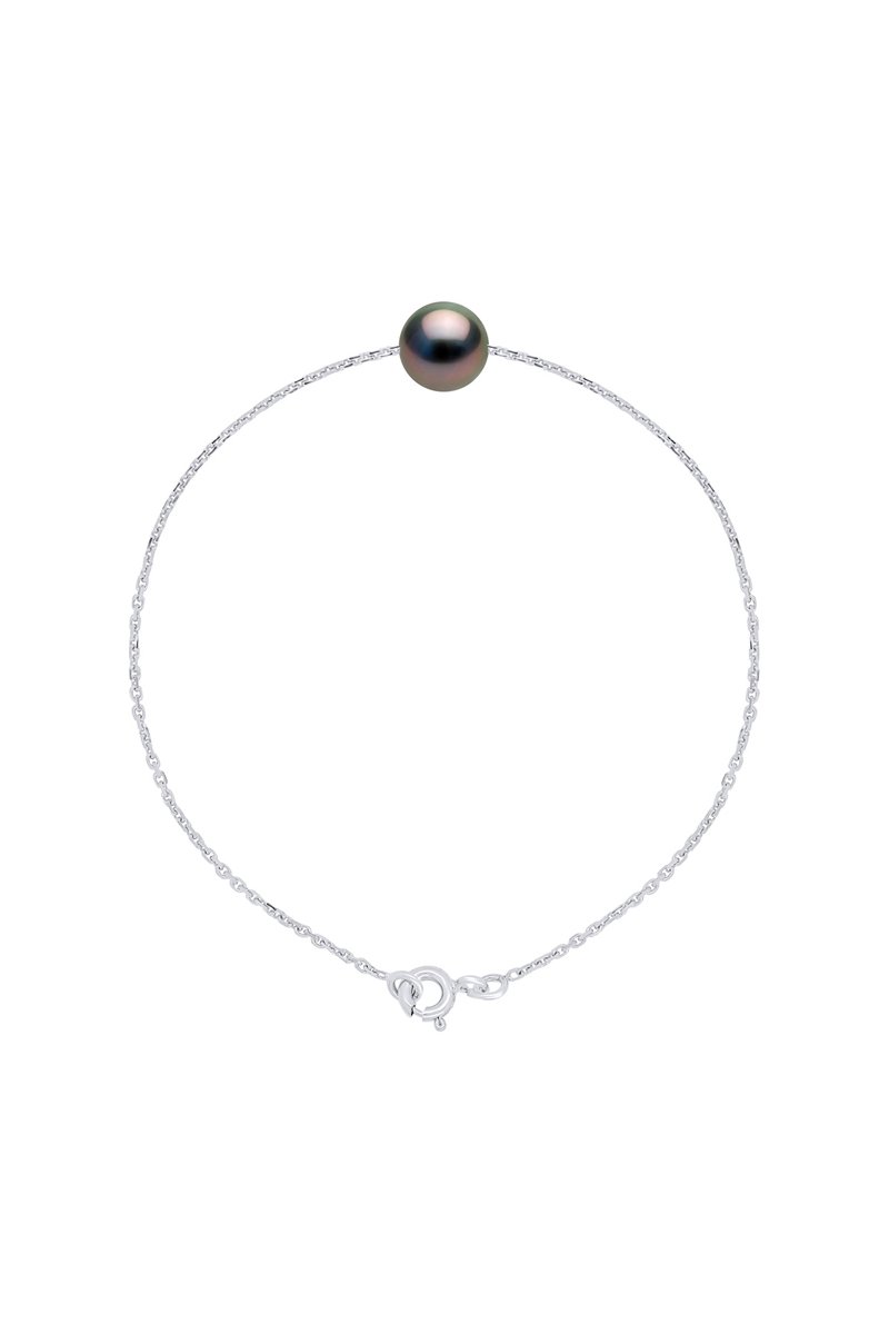 Pulseira em ouro branco com uma pérola de cultura.