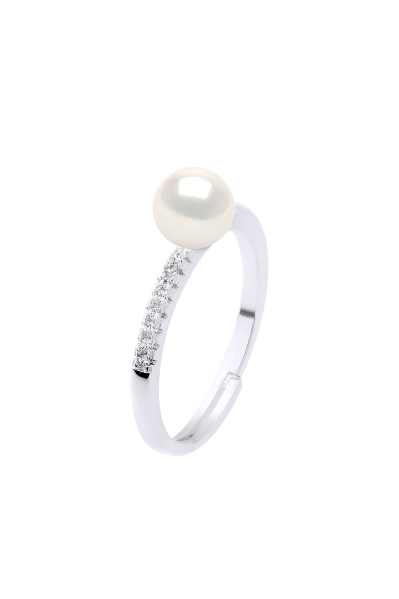 Anel ajustável em prata com uma pérola de cultura de água doce e zircónios.