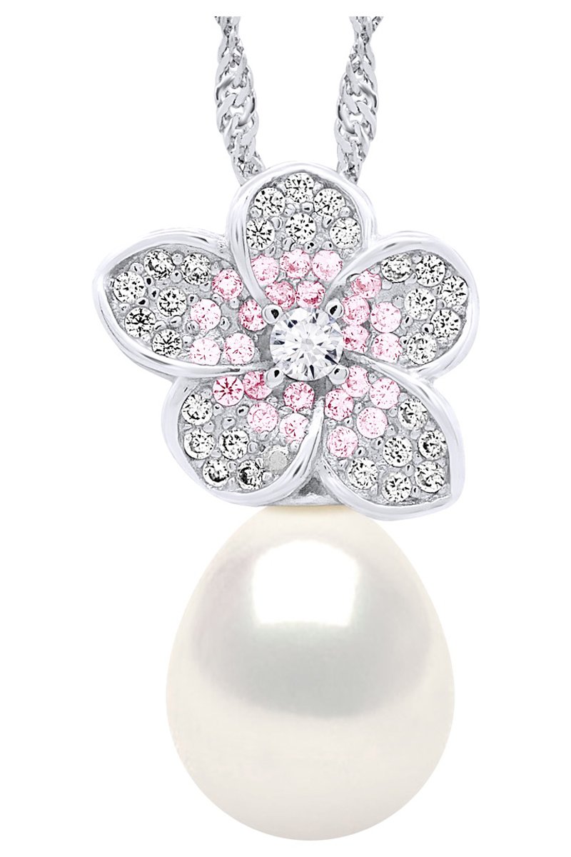 Pendente com uma pérola de cultura de água doce e zircónios.