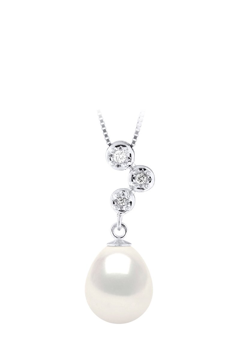 Colar - Ouro branco, pérola de cultura de água doce e diamantes