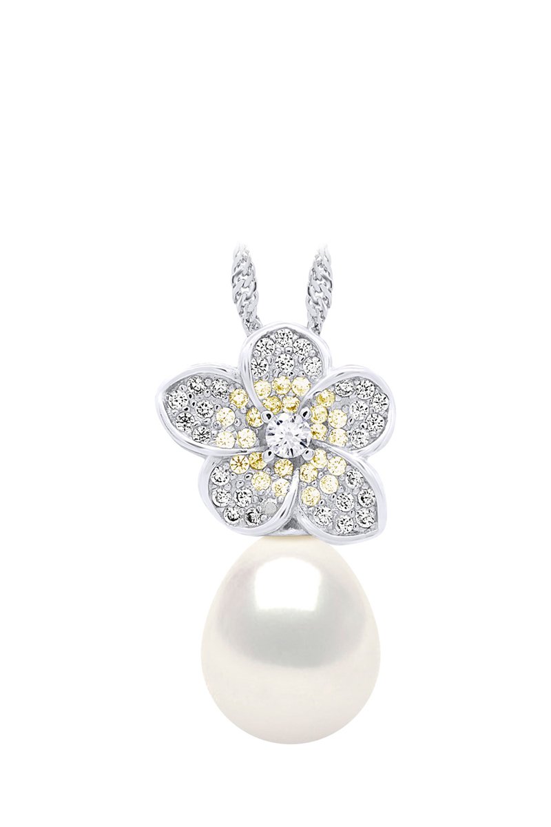 Pendente com uma pérola de cultura de água doce e zircónios.