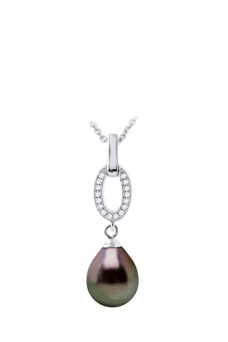 Pendente com uma pérola de cultura de Tahiti e zircónios.