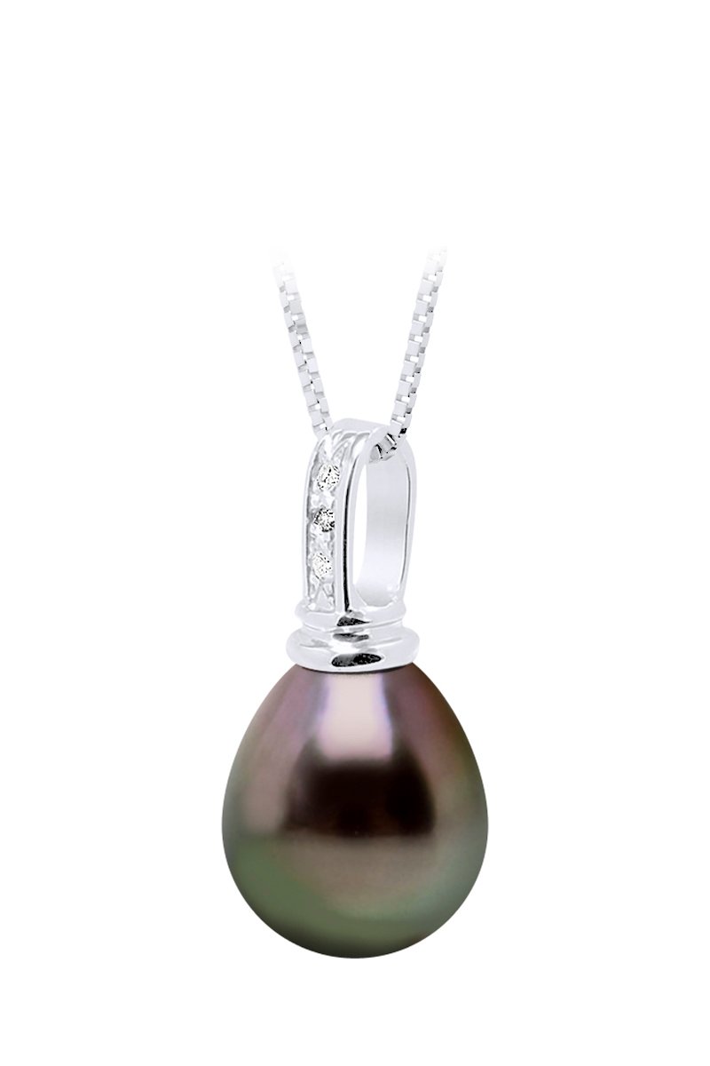 Pendente em ouro branco com uma pérola de cultura de Tahiti e 3 diamantes.