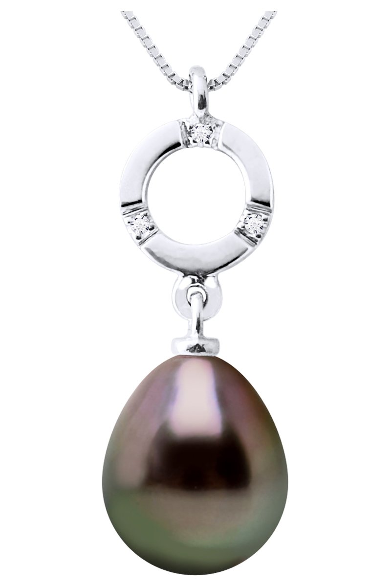 Colar - Ouro branco, pérola de cultura de Tahiti e diamantes