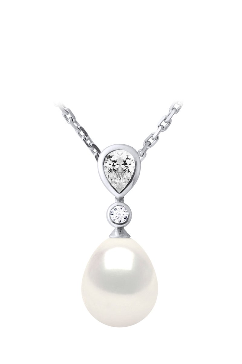Pendente com uma pérola de cultura de água doce e zircónios.