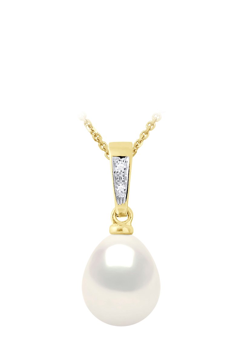 Pendente em ouro amarelo com uma pérola de cultura e um diamante.