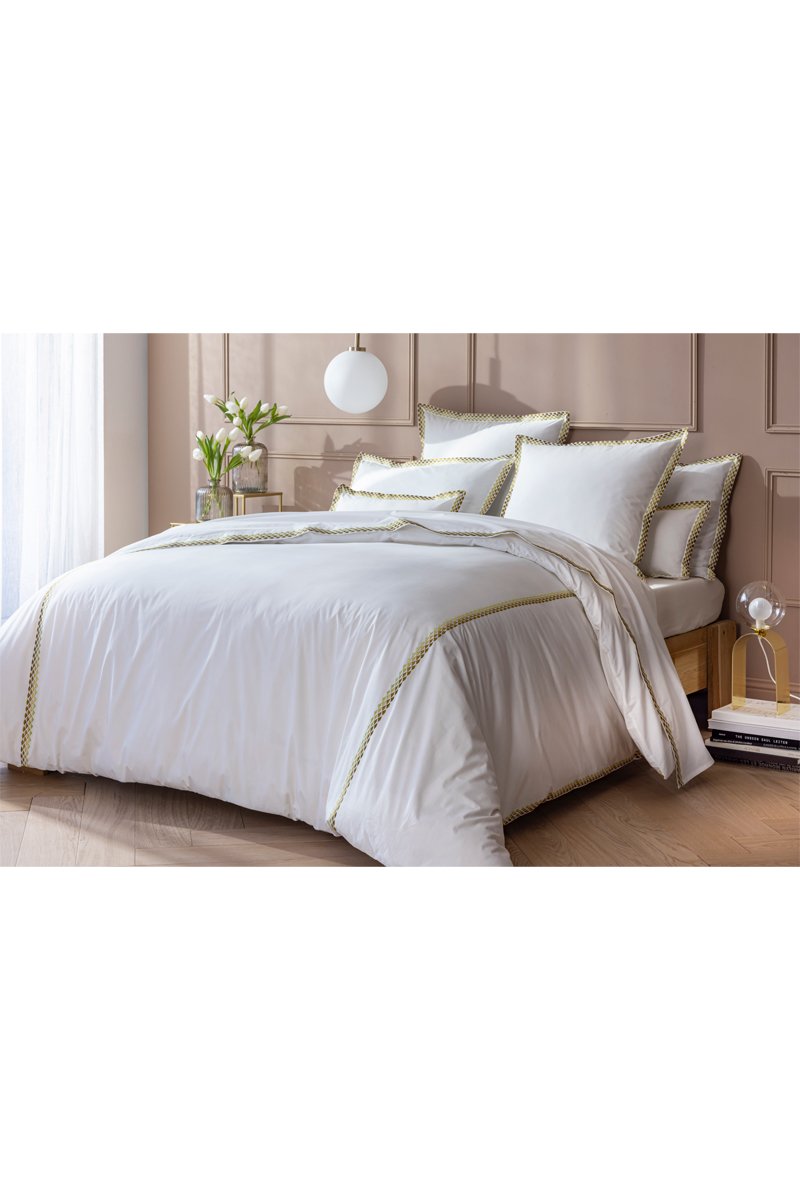 Conjunto de edredão em percal de algodão 80 fios/cm² - Branco e dourado