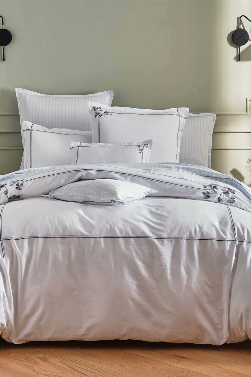Conjunto de edredão em cetim de algodão 120 fios/cm² Clover - Branco e cinzento