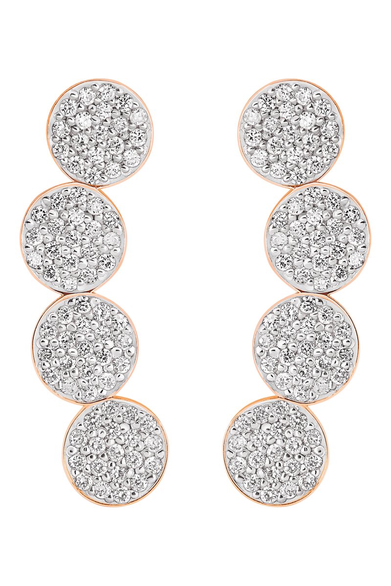 Brincos pendentes em ouro rosa com 76 diamantes.