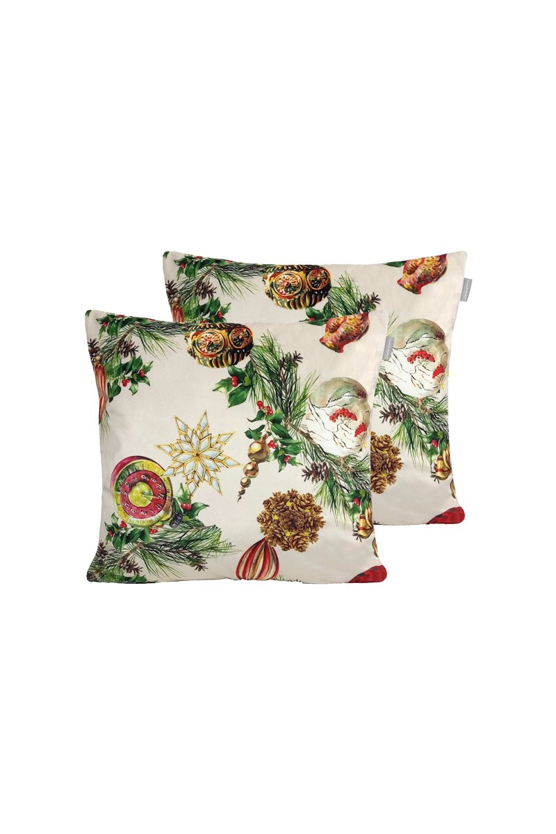 2 capas de almofada em veludo Decoration Xmas - Branco e vermelho - 30 x 50 cm