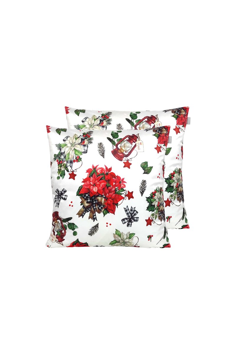 2 capas de almofada em veludo Ribbon - Branco e vermelho - 60 x 60 cm