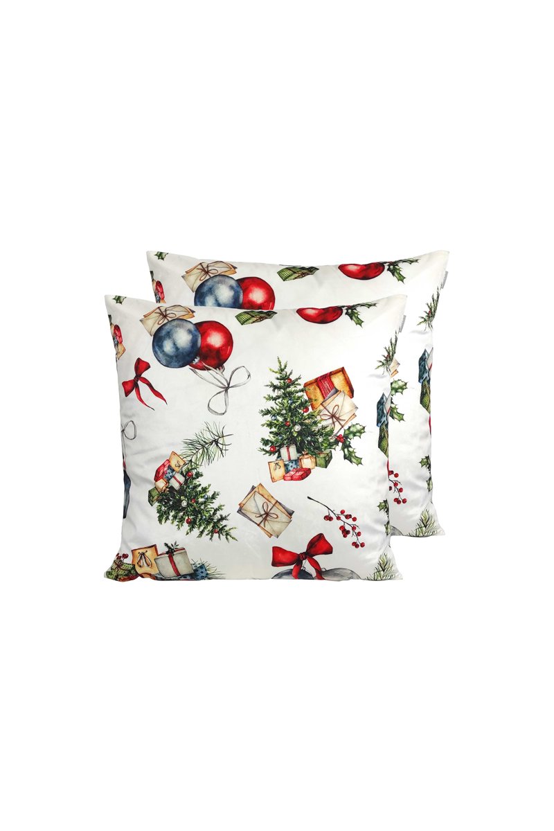 2 capas de almofada em veludo Presents - Branco e verde - 60 x 60 cm