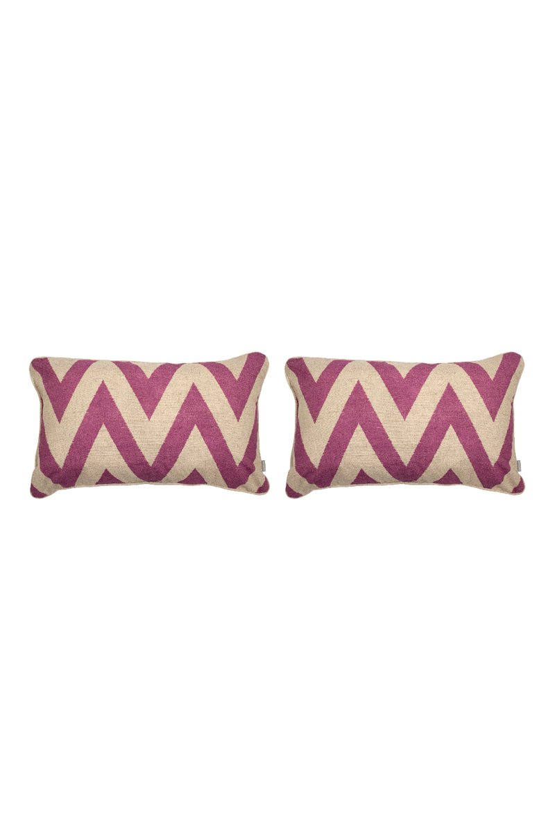 2 fronhas de almofada em linho Meena - Bege e fúcsia - 30 x 50 cm