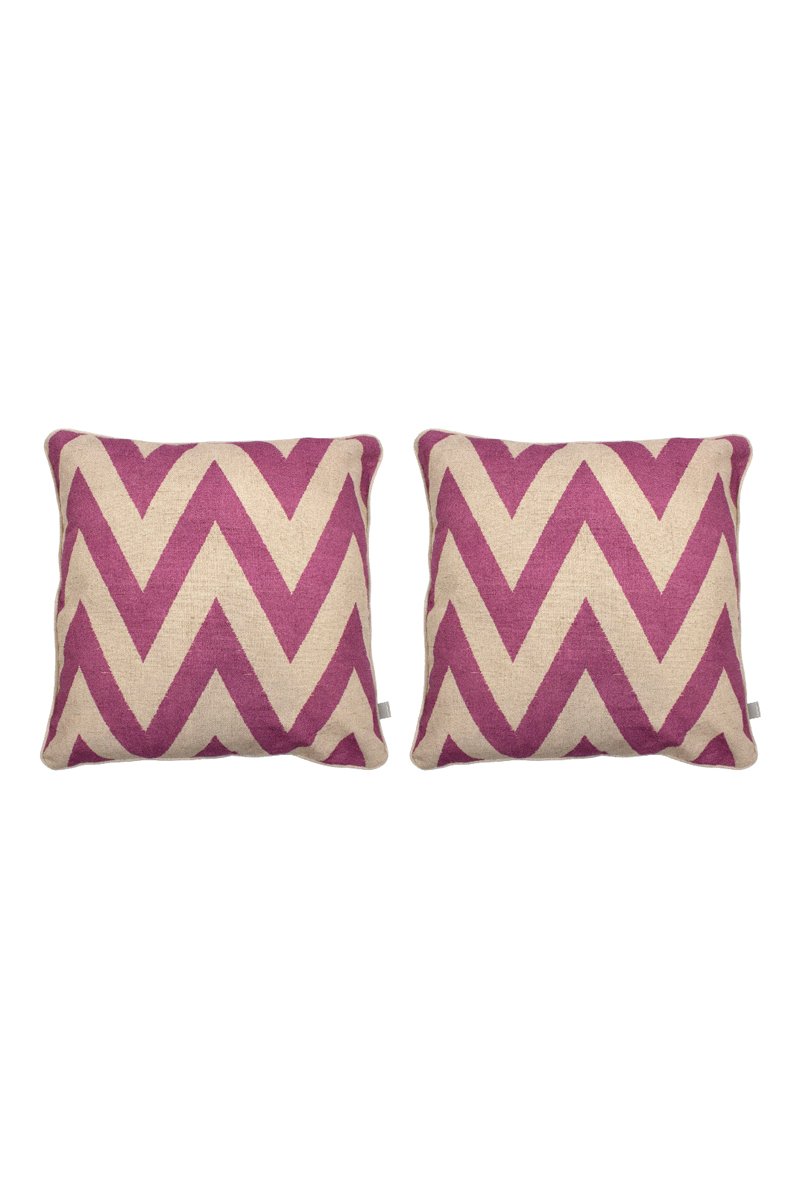 2 fronhas de almofada em linho Meena - Bege e fúcsia - 50 x 50 cm