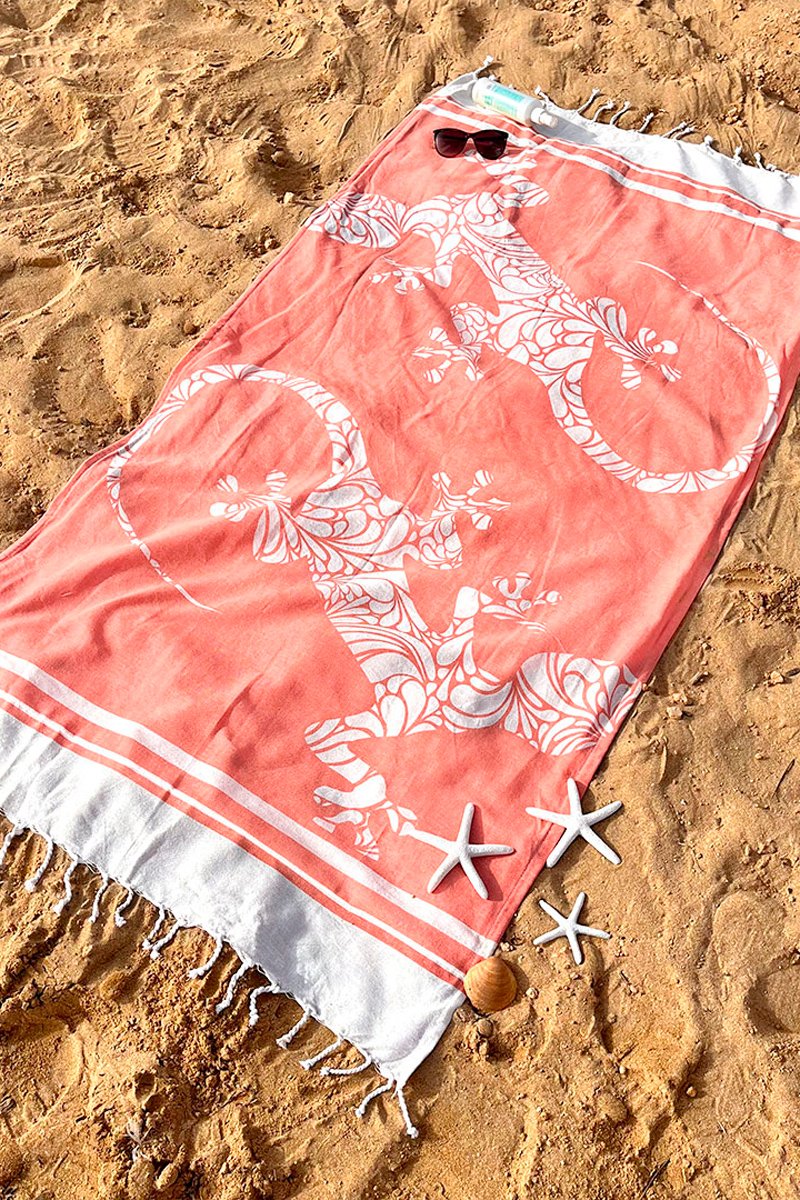 Toalha de praia Salamandras - Coral e branco - 90 x 170 cm