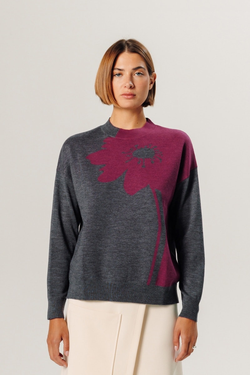 Camisola em lã merino de mangas compridas.