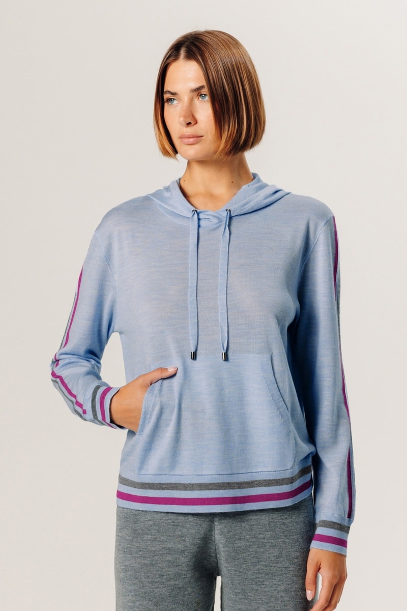 Camisola em lã merino com capuz com atilhos de ajuste de mangas compridas.