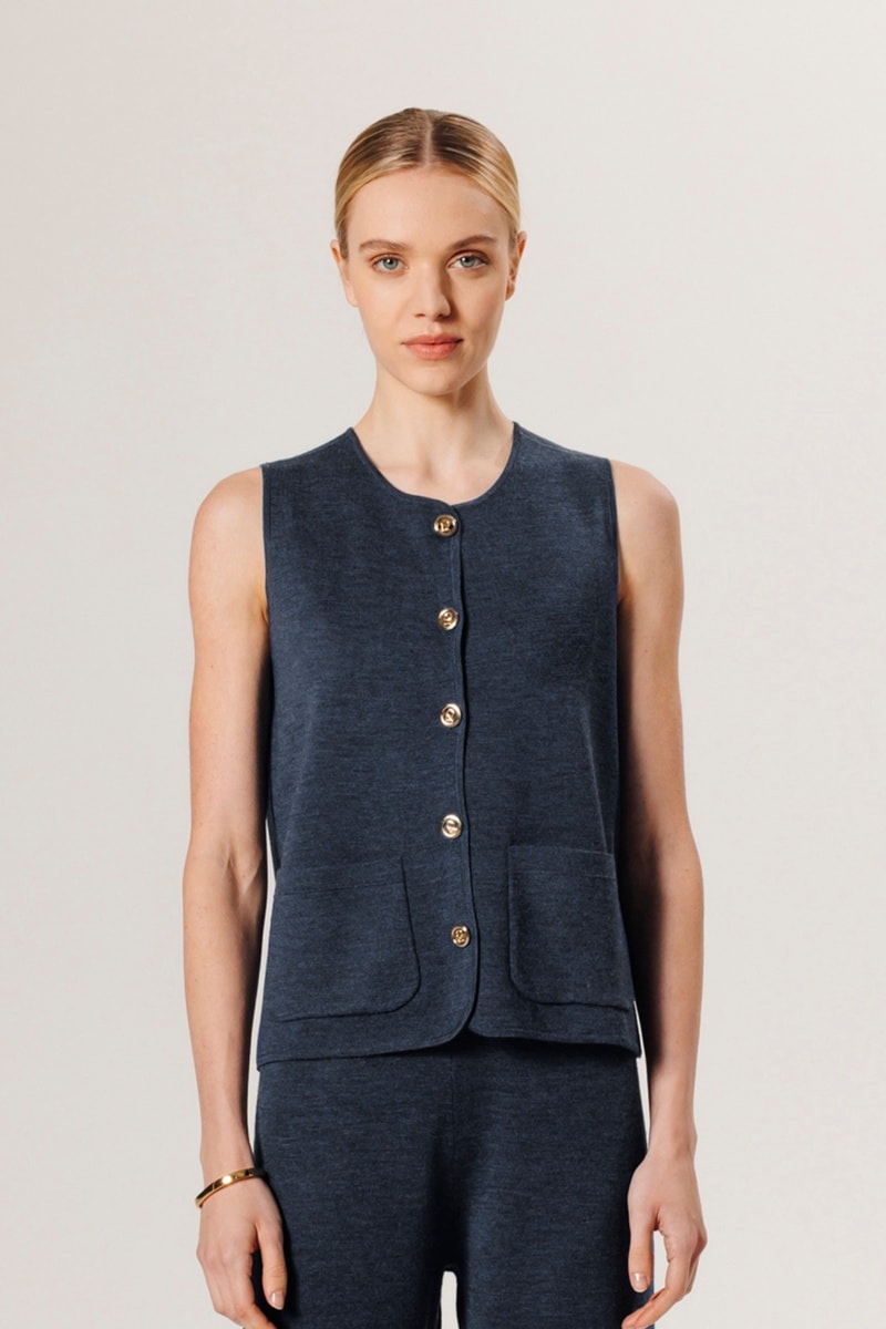 Colete em lã merino.