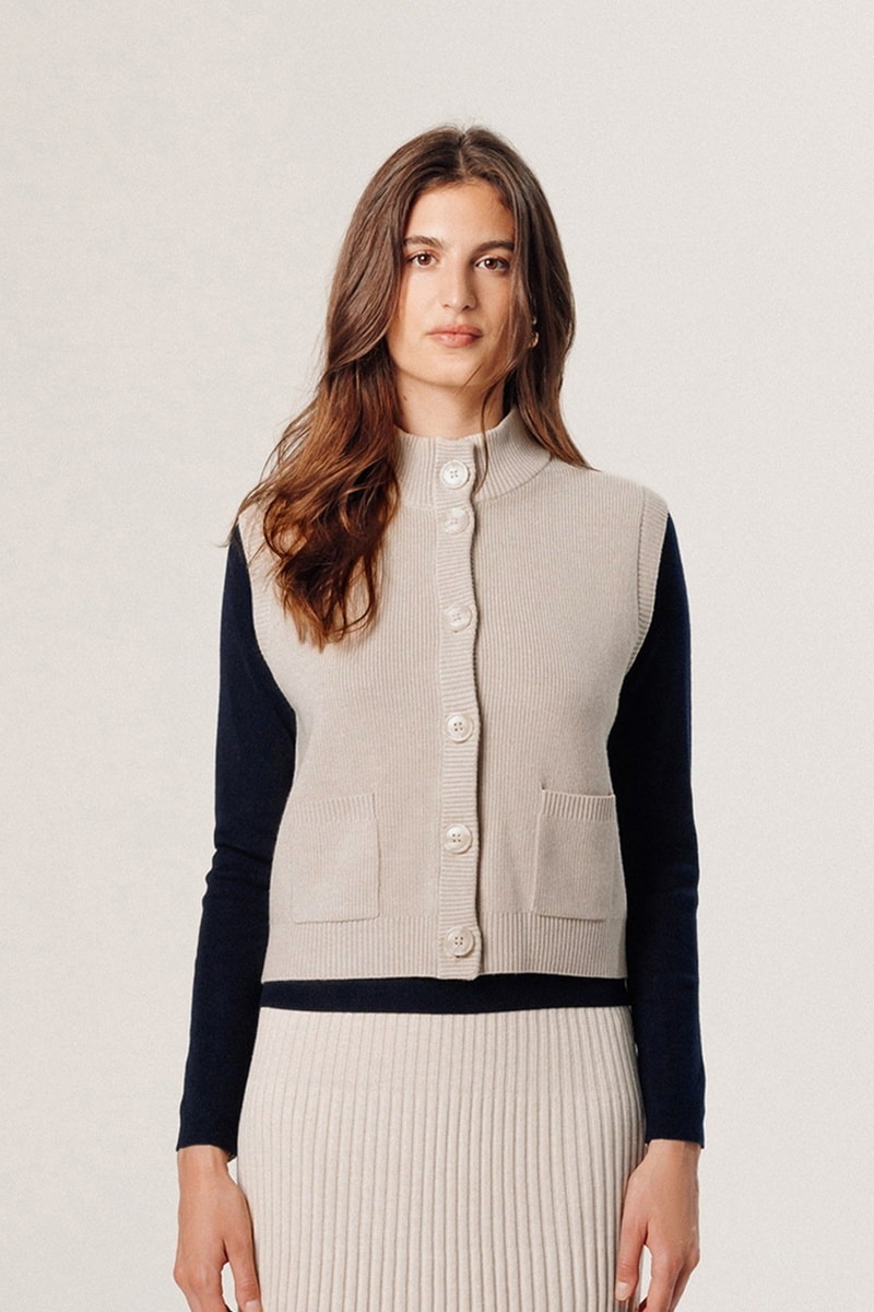 Casaco de malha de mangas curtas.