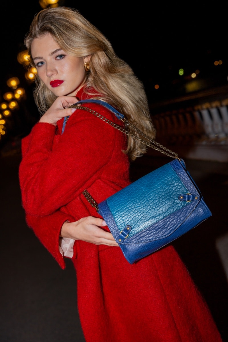 Mala a tiracolo em couro Alice - Azul e violeta