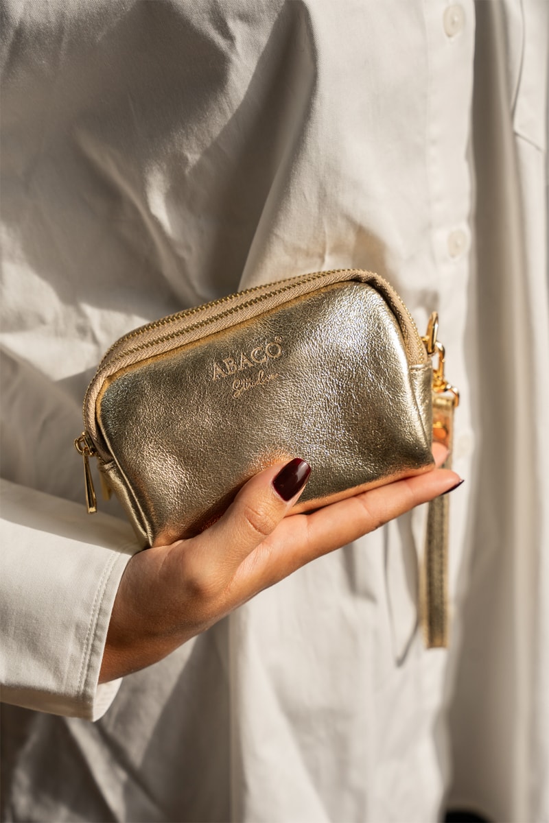 Porta-moedas em couro - Dourado