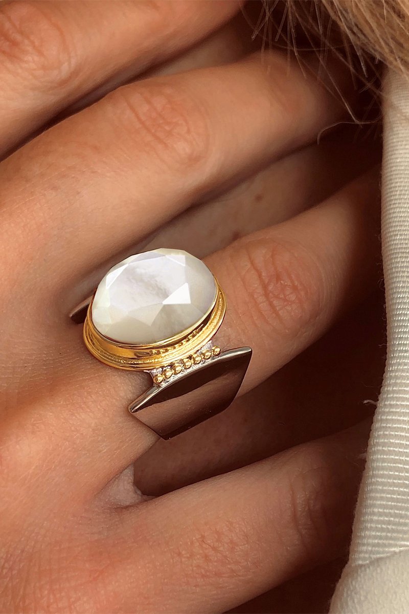Anel em prata e prata banhada a ouro amarelo com madrepérola.