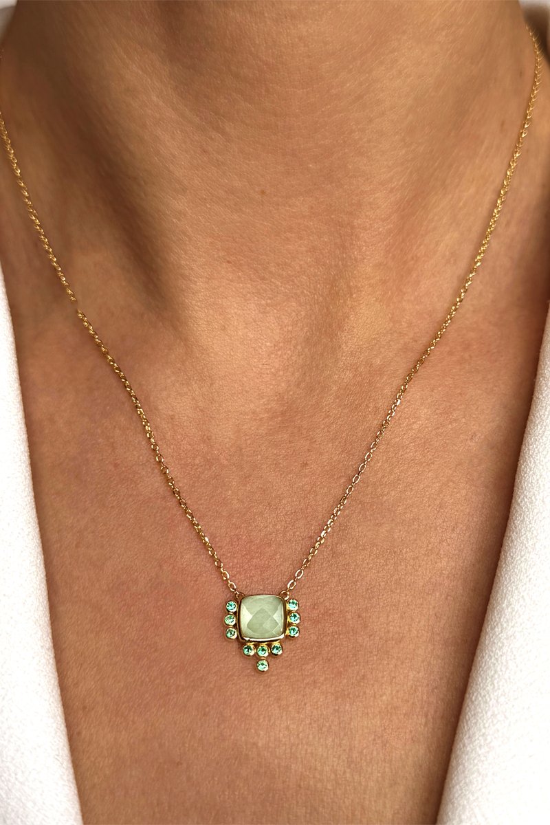 Colar - prata banhada a ouro amarelo e quartzo verde