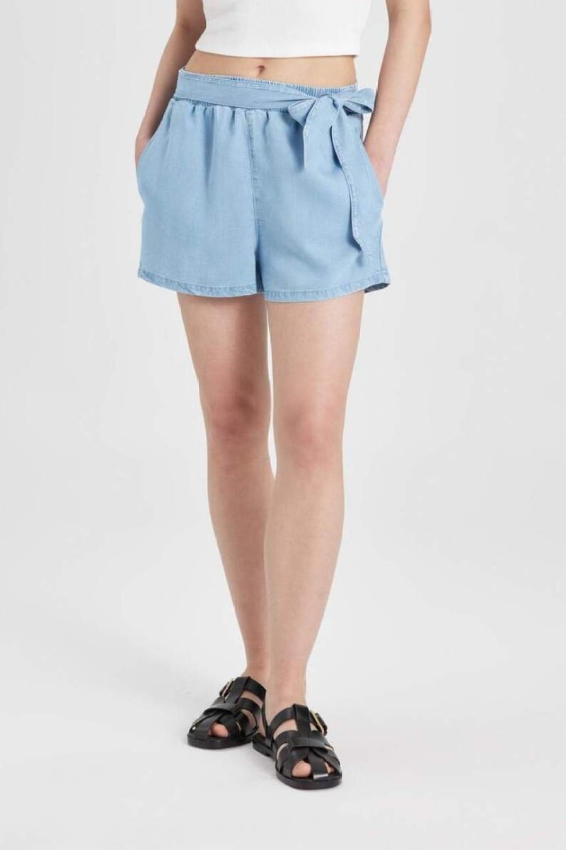 Calções em linho cintura subida - Azul-claro